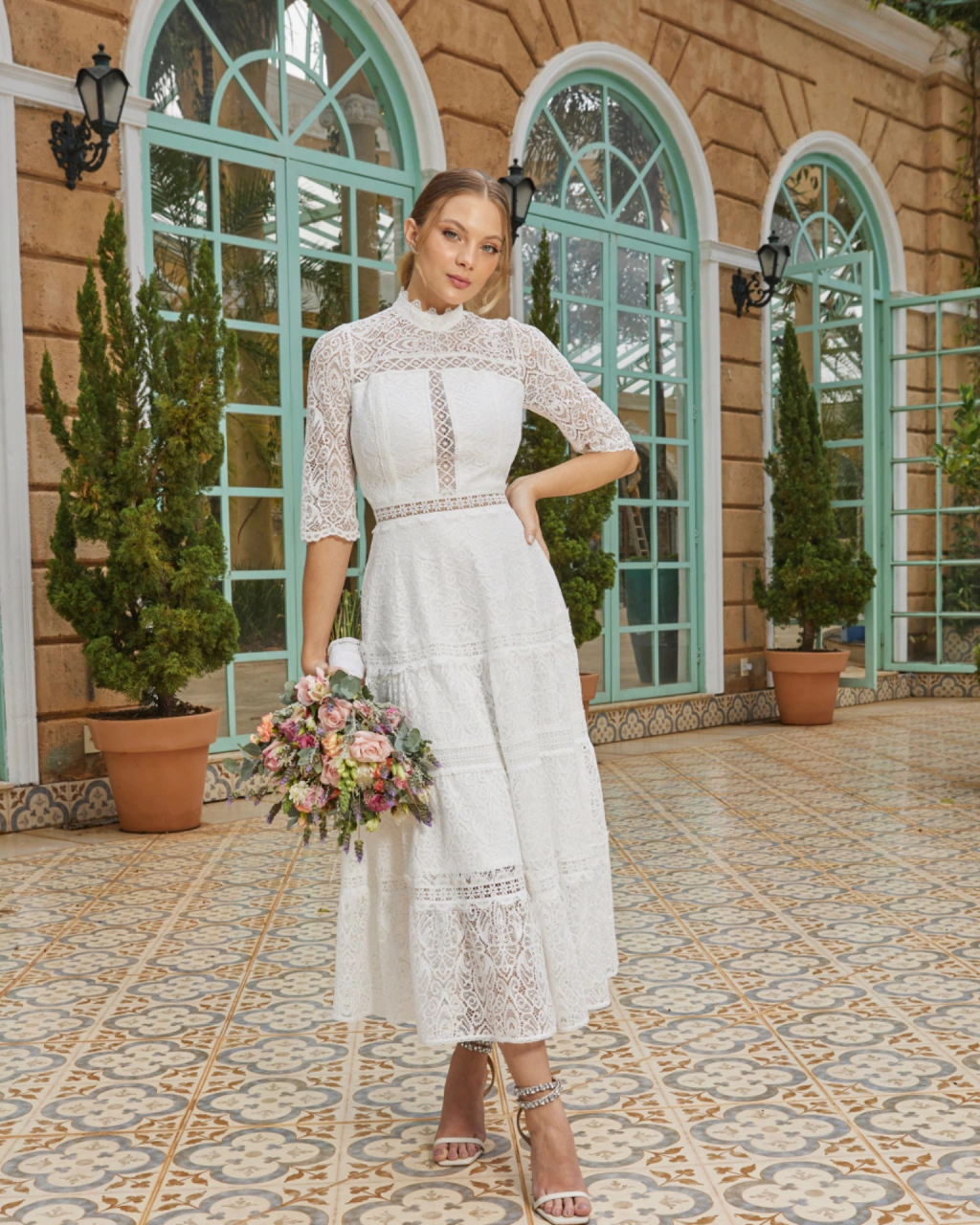 ♡ Vestido midi, modelagem evase e confeccionado na renda.