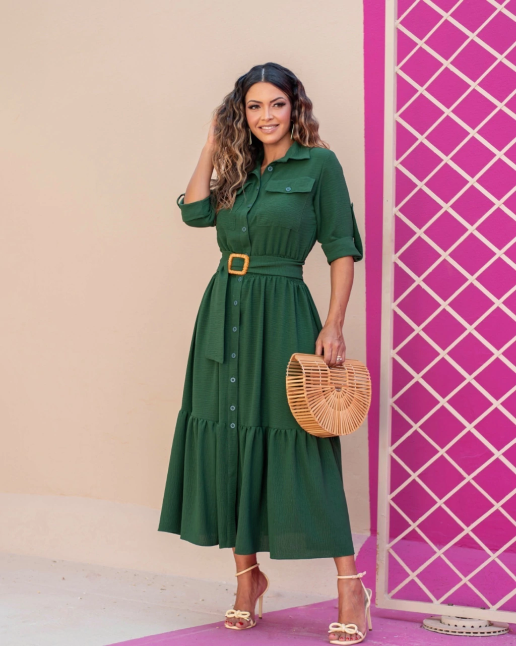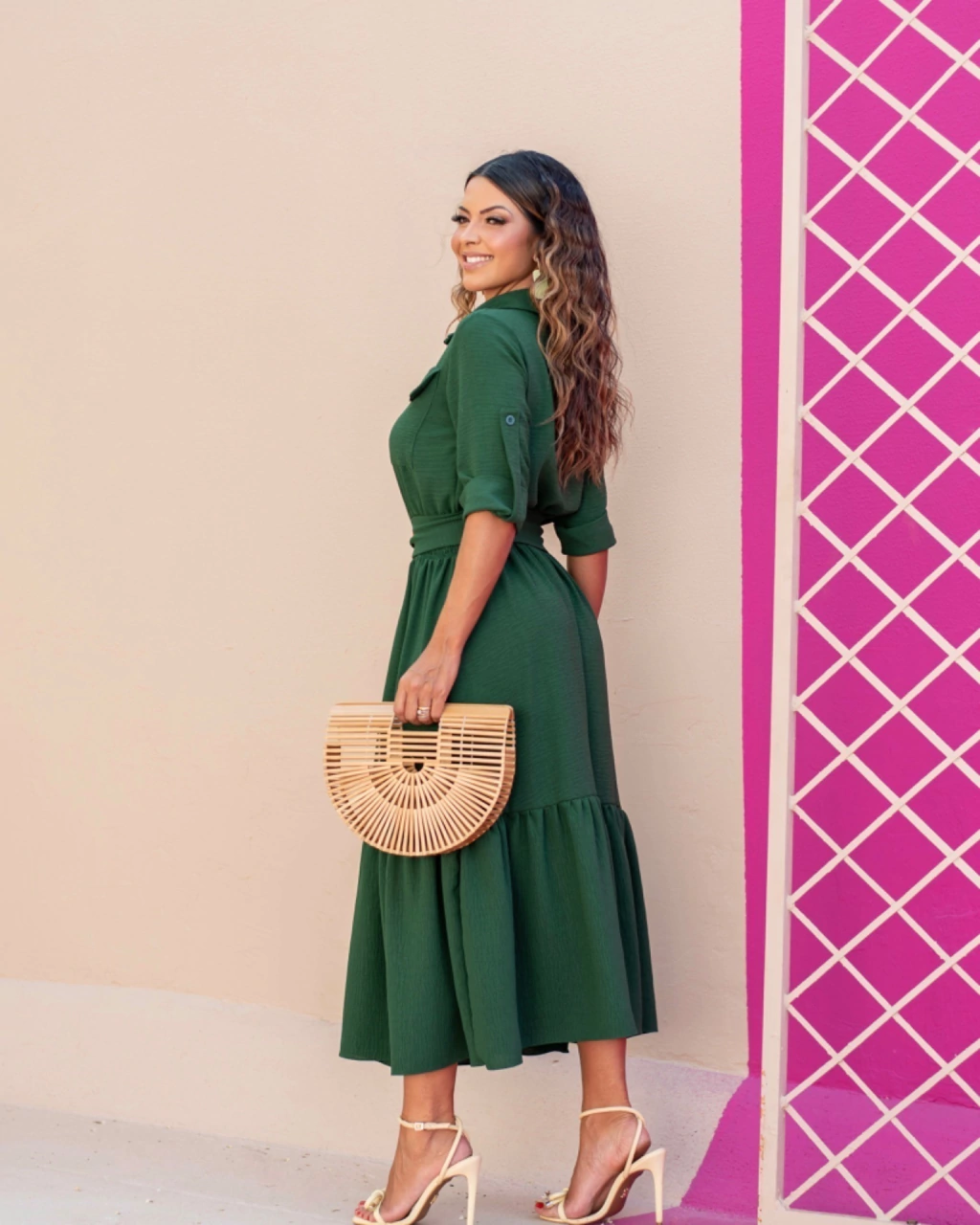 ♡ Vestido midi, modelagem evase e confeccionado crepe.